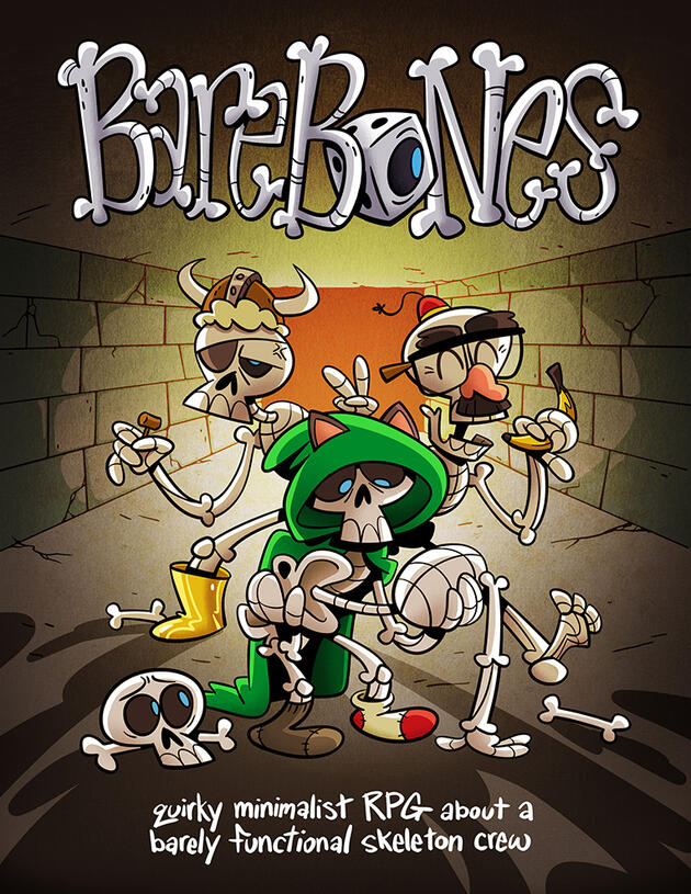Quirky minimalist collaborative game with amnesiac skeletonsBare Bones is a casual pen & paper imagination game built for no prep one-shots. It's rules-light and goof-heavy; perfect for Halloween parties, pub nights, children, and newbies to the TTRPG tradition.👇 buy it on Gumroad